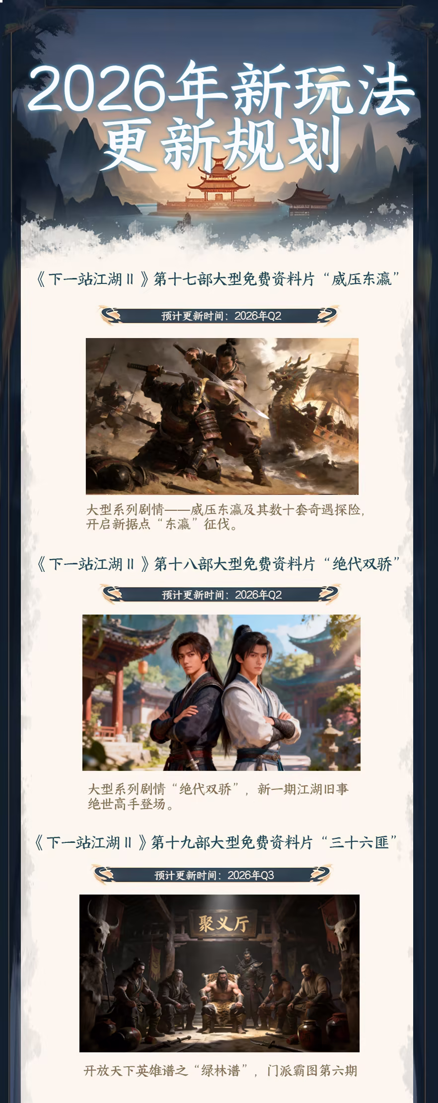 庞大内容、及时更新:上线迄今已超过百更、八部大型玩法资料片!2025年我们将继续砥砺前行,用更多更好玩的内容来填充这个江湖大世界!