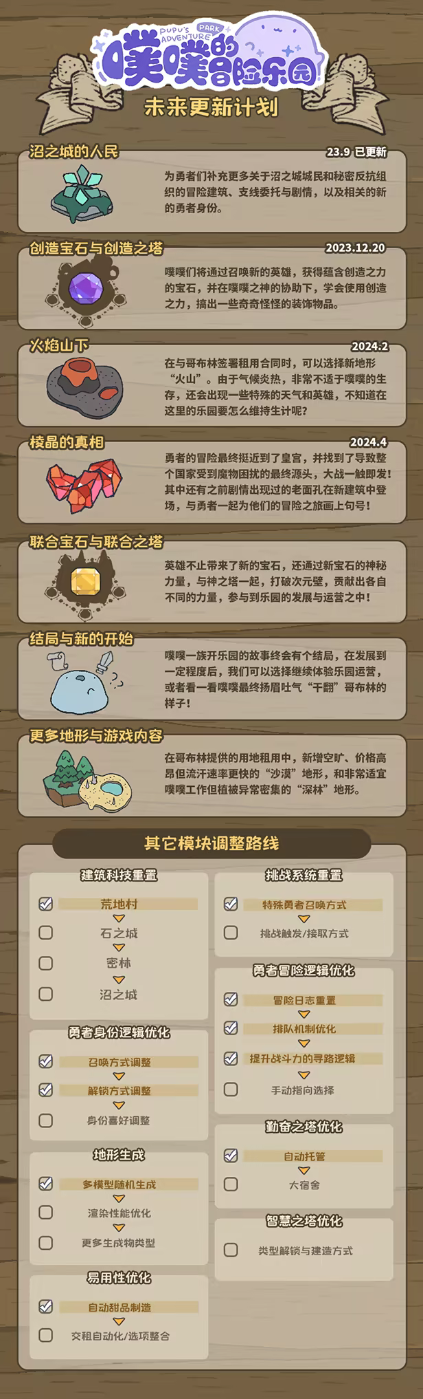 噗噗们经营了一个冒险乐园,吸引被哥布林的力量召唤来的“勇者”来游玩。噗噗的冒险乐园意在为勇者们量身打造一次难忘的冒险体验,通过努力建设乐园设施来为满足勇者们的需求!
