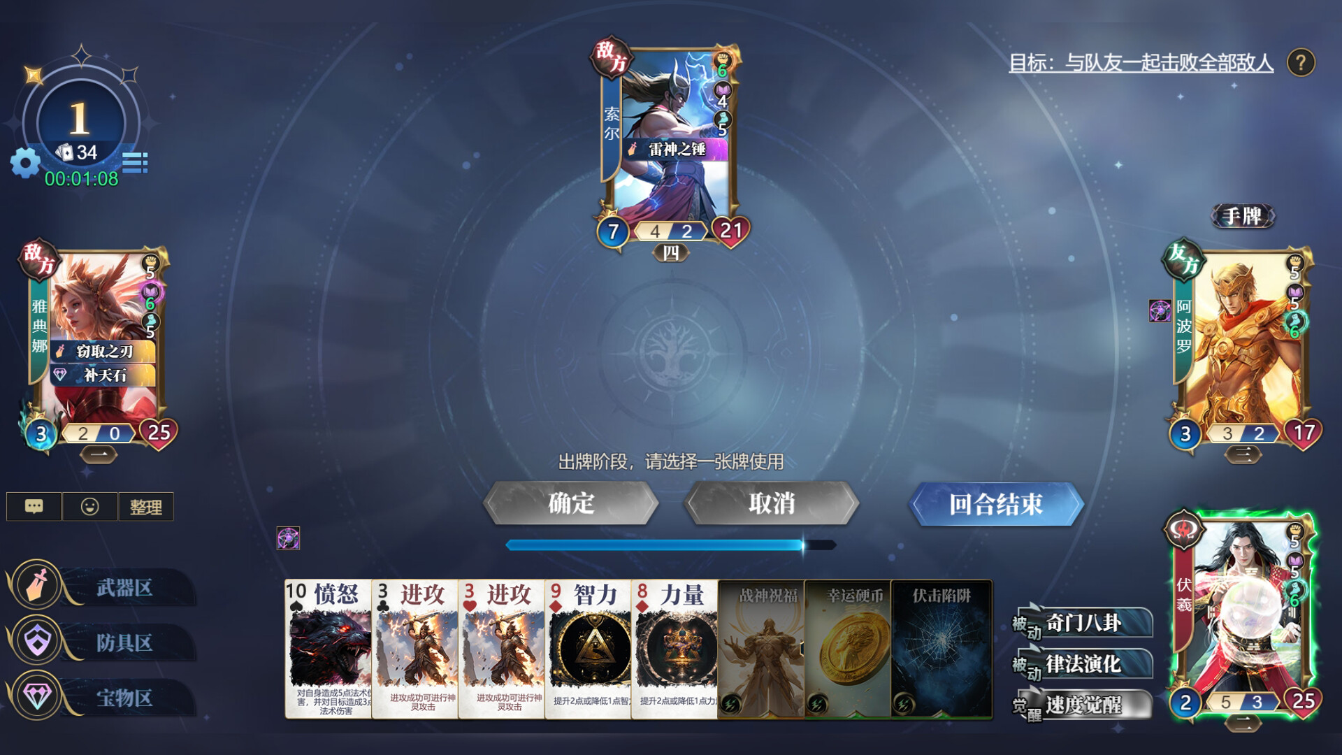 游戏内以华夏、北欧、希腊、埃及四大文明神灵为主题,拥有高达53位神灵供您选择,有埃及金字塔下的阿努比斯、北欧冰原挥舞雷神之锤的索尔、希腊以智慧守护队友的雅典娜、更有华夏孙悟空七十二变尽显神通。每个文明都有独特的神灵、构筑卡和故事,玩家可以收集来自不同文明的神灵及卡牌,组建属于自己的多元卡组,感受不同文明的碰撞与融合,体验跨越时空的奇妙之旅。