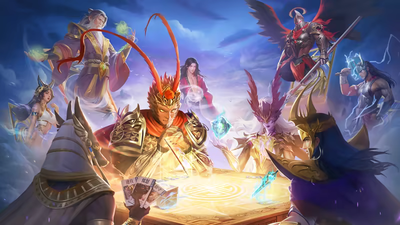 游戏内以华夏、北欧、希腊、埃及四大文明神灵为主题,拥有高达53位神灵供您选择,有埃及金字塔下的阿努比斯、北欧冰原挥舞雷神之锤的索尔、希腊以智慧守护队友的雅典娜、更有华夏孙悟空七十二变尽显神通。每个文明都有独特的神灵、构筑卡和故事,玩家可以收集来自不同文明的神灵及卡牌,组建属于自己的多元卡组,感受不同文明的碰撞与融合,体验跨越时空的奇妙之旅。