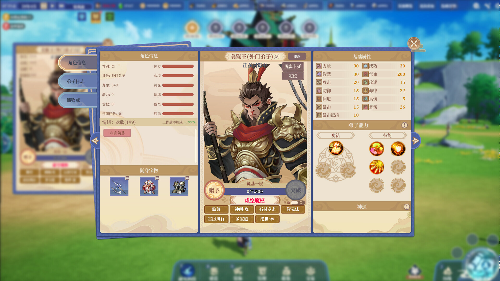 游戏中达到特定阶段时会触发新的世界任务,完成任务会获得奖励甚至会有新的弟子加入门派。